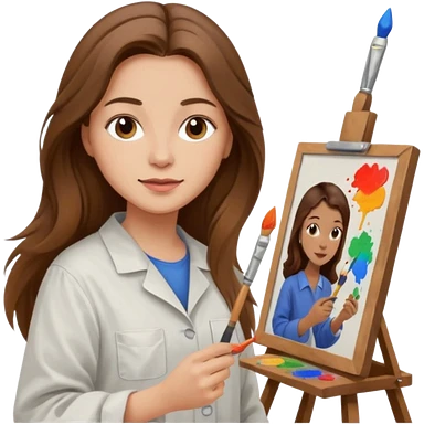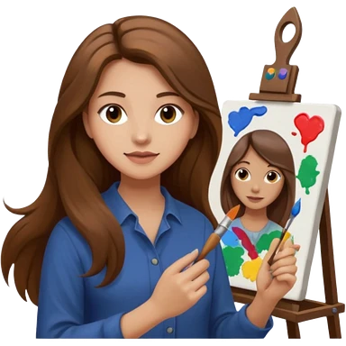 femme brune cheveux mi long noir artiste peintre emoji | AI Emoji Generator