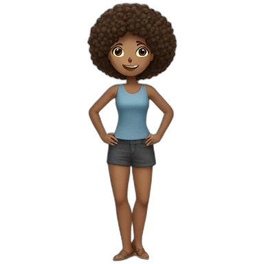 FEMME FRISÉ 60 ANS CHEVEUX NOIR FRISÉ LONG SOURIANTE AVEC CHANDAIL ROSE, YEUX BLEU ET UN PINCEAU À LA MAIN LA MAIN AVEC 5 DOIGT SEULEMENT ET LUNETTE emoji
