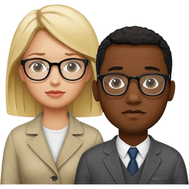 2 personnages : 1 femme blonde qui attend et 1 hommes noir à lunette emoji