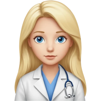Femme blonde aux cheveux longs, aux yeux bleus, vétérinaire emoji