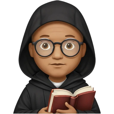Monk priest prayer black habit with hood round black glasses done light brown wavy hair under hood emoji