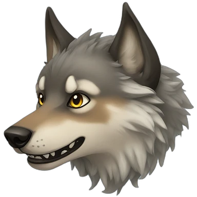 Fenrir Greyback in harry potter, black open chest coat, wolf face, pointed ear, bared teeth emoji
