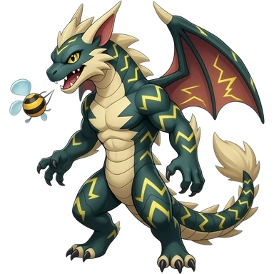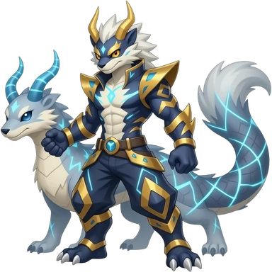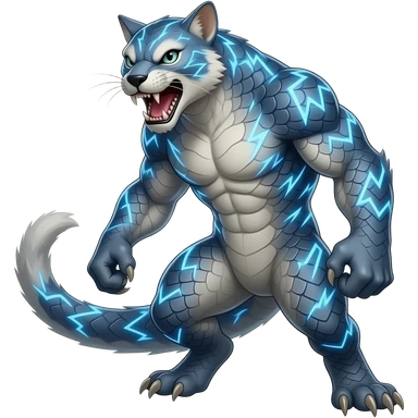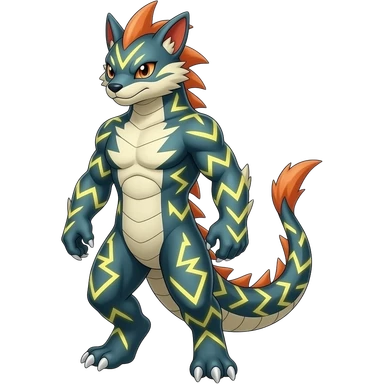 Feral Scaly Striking Slaying Badass Evil Handsome Lightning-patterned Zig-zagged buzzy fuzzy Meloetta-Renamon-Zeraora-Luxray-Cobalion-Absol-Vernid-fusion-hybrid-creature, full body emoji