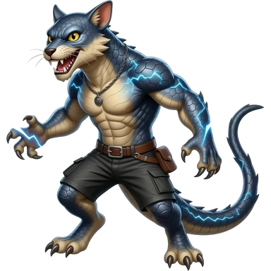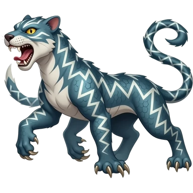 Feral 4-legged four-legged animalistic quadrupedal Scaly Striking Slaying Badass Evil Handsome Lightning-patterned Zig- emoji