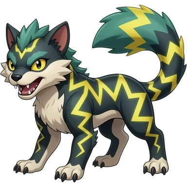 Feral quadrupedal Scaly Striking Slaying Badass Evil Handsome Lightning-patterned Zig-zagged buzzy fuzzy Meloetta-Renamon-Zeraora-Luxray-Cobalion-Absol-Vernid-fusion-hybrid-creature, full body emoji