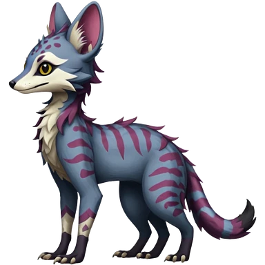 Feral Rare Fantasy dark pastel Vernid-Sergal-Genet-Trico-species by LiLaiRa, random markings, tufted tail, tufted ears, full body emoji