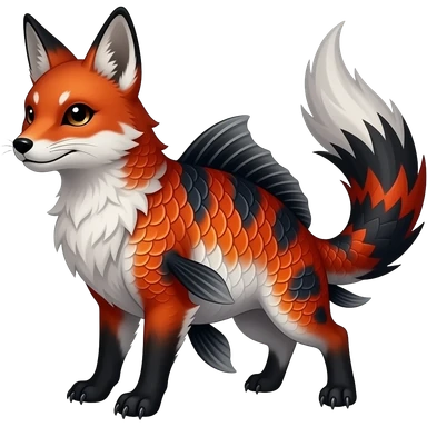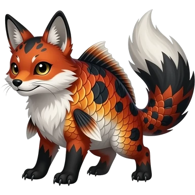 Feral Rare Fantasy scaly evil spooky vibrant dark shady shaded detailed deep-dark-cobalt-blue-gradients-colored colorful Vernid-Sergal-Genet-Trico-Fox-species by LiLaiRa, with dark-blackish points, white belly, random markings, tufted tail, tufted ears, full body emoji | AI Emoji Generator
