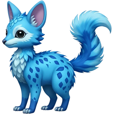 Feral Rare Fantasy shiny soft fuzzy furry vibrant tropical cobalt-blue and cyan Vernid-Trico-species-creature by LiLaiRa, random markings, tufted tail, tufted ears, full body emoji | AI Emoji Generator