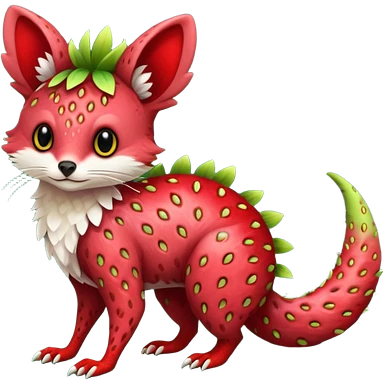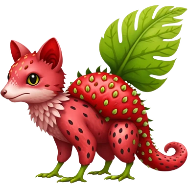 Feral Rare Fantasy vibrant tropical red and sanguine, and lime-collred Vernid-Trico-species-creature by LiLaiRa, random markings, tufted tail, tufted ears, full body emoji | AI Emoji Generator
