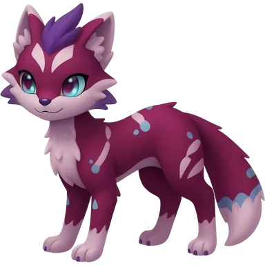 Feral Rare realistic edgy burgundy-purple pretty beautiful handsome gorgeous aesthetic colorful vibrant Vernid-Trico-Silvally-Nargacuga-Gryphon-fusion-hybrid-species-Fakemon-creature by LiLaiRa, random markings, tufted ears, full body with snow-leopard-pattern-markings emoji | AI Emoji Generator