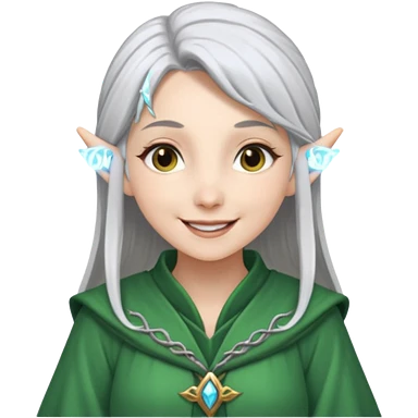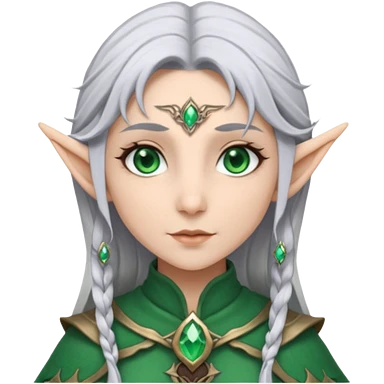 Frieren, grey_hair, twintails, elf, pointy_ears, long_hair, green_eyes, blue_eyes emoji