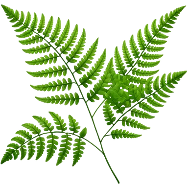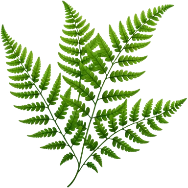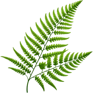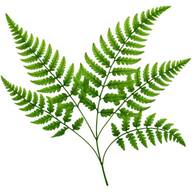A close-up of a fern plant with intricate leaves, painted in soft watercolor greens with a subtle textured background. emoji