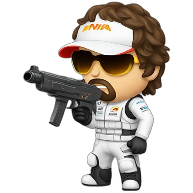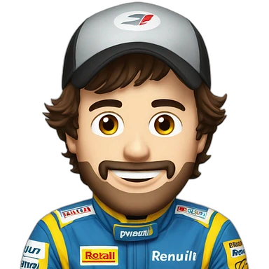 Make an emoji with Fernando Alonso un a F1 car saying help emoji
