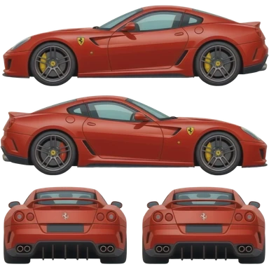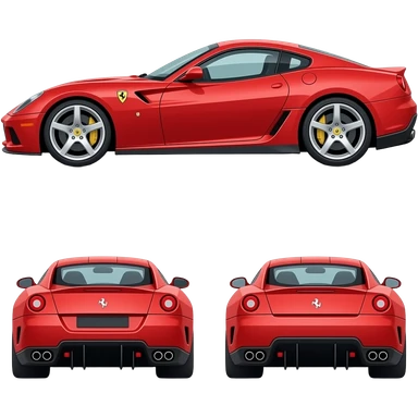 ferrari 599GTB, perfect proportions, side view, front view, back view, cartoon drawing, exaggerated emoji