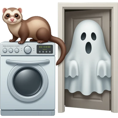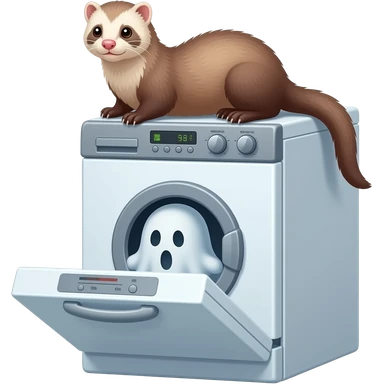 ferret sitting on top of a dishwasher with a ghost peeking out of it emoji