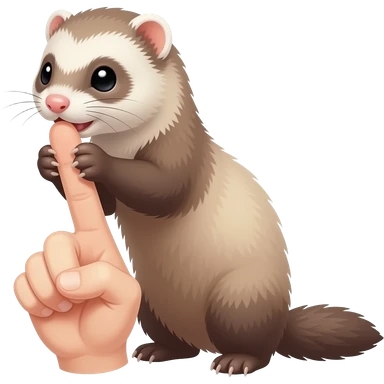 Ferret with a crown and a ball gown holding Lilly of the valley flowers emoji