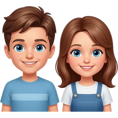fesme uns nen i una nena corrents mig castanys amb ulls blaus i la nena amb cabell llarg i amb un ros fosci que siguin germans emoji