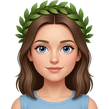 Ragazza occhi azzurri viso sottile corona di alloro sulla testa emoji