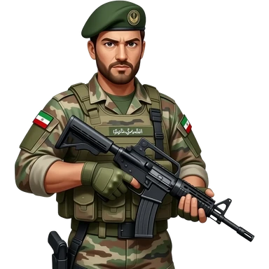 fierce looking iranian national guard with rifle emoji