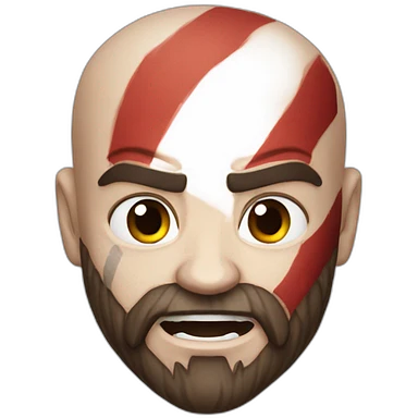 Android-style emoji of Kratos, with his bald head, red face tattoo, and beard, using Android's flat, simple shapes and colors emoji