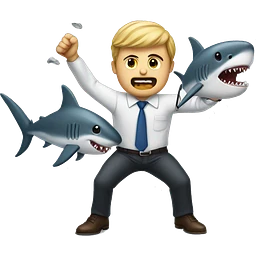 dolphin playing with computer and fighting with shark wearing blue suit emoji