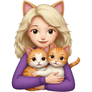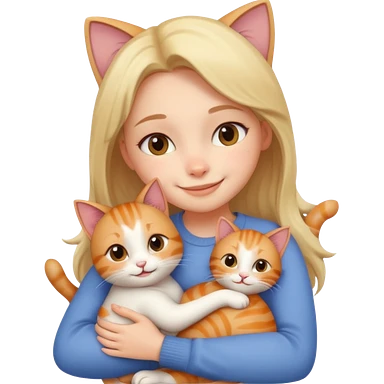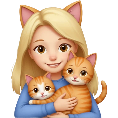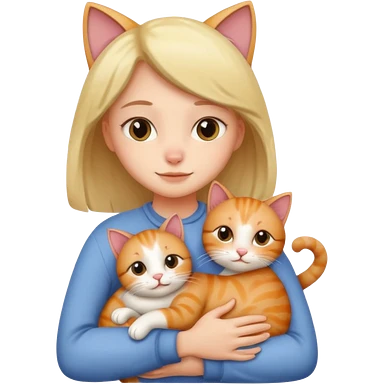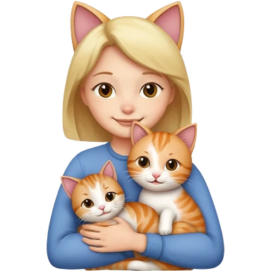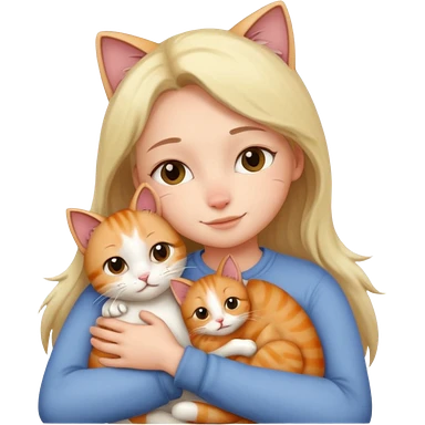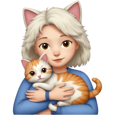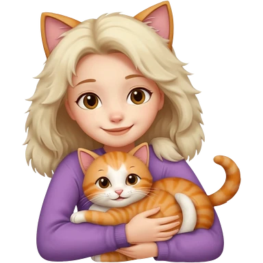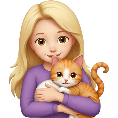 A cute girl hugging a cute cat emoji