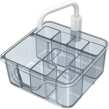 Transparent pill organizer with pastel pink compartments, minimal background emoji