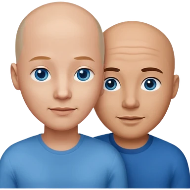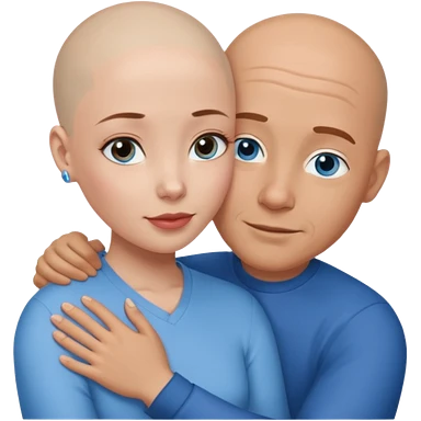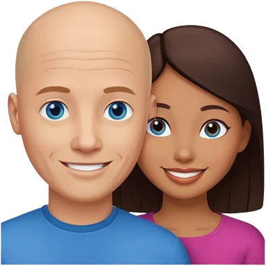 Bald white man blue eyes in love with Filipina woman with long hair dark brown eyes and pink lips smiling emoji