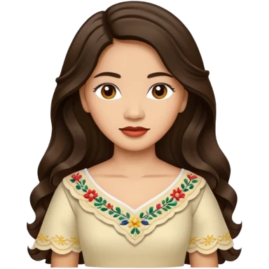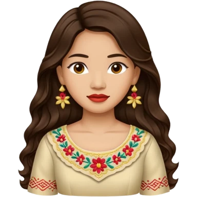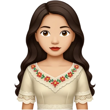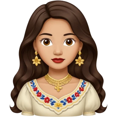 Filipino woman with long dark wavy hair parted in the middle wearing a traditional filipiniana emoji