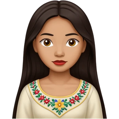 Filipino woman with long dark hair parted in the middle wearing a traditional filipiniana emoji