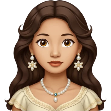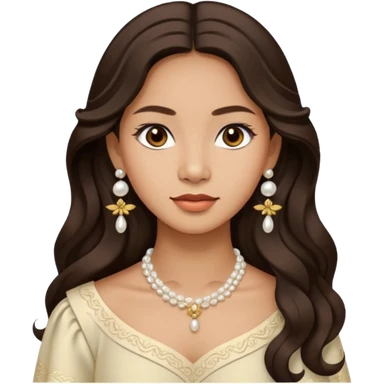 Tan Filipino woman with dark brown eyes and long dark wavy hair parted in the middle wearing a traditional filipiniana and white pearl earrings emoji