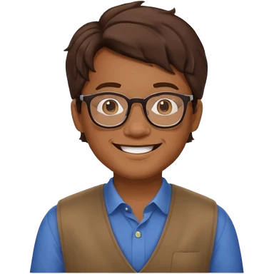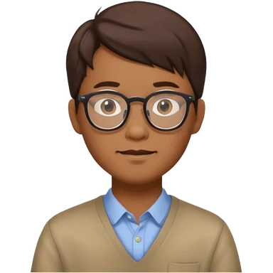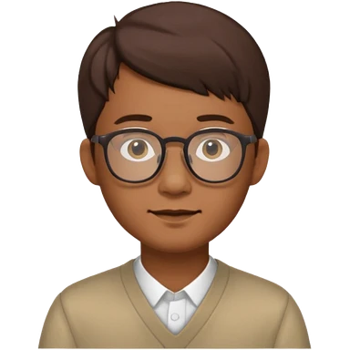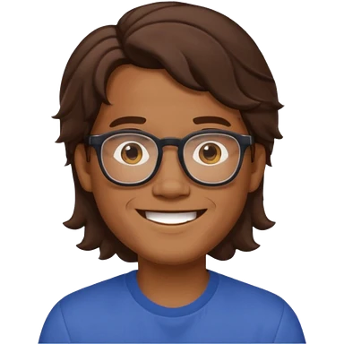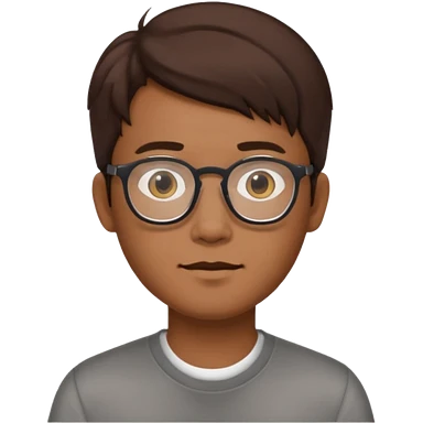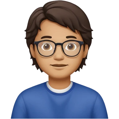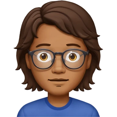 a boy with medium-length dark hair, wearing glasses with brown eyes emoji