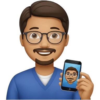 Filipino male, with goatie, wearing glasses, medium wavy length hair, emoji | AI Emoji Generator