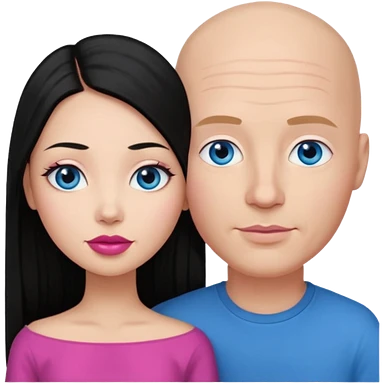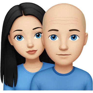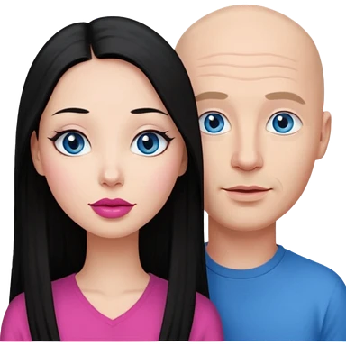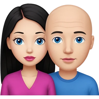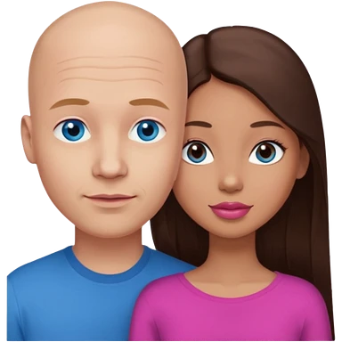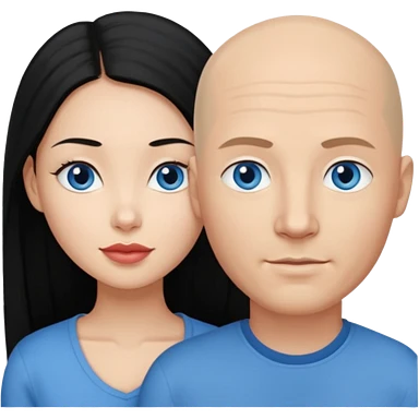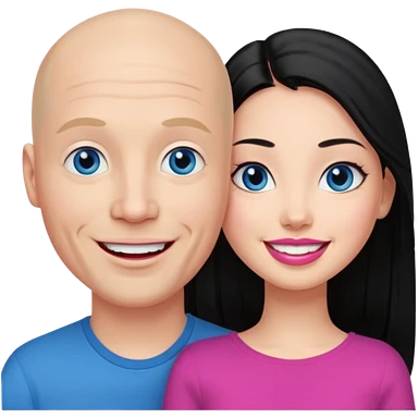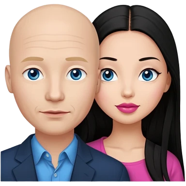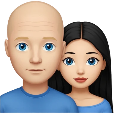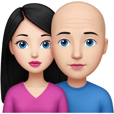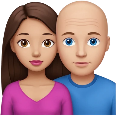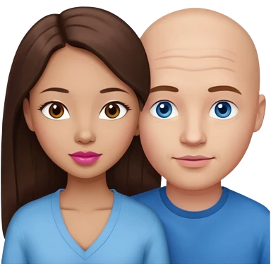 Bald white man blue eyes in love with Filipina woman with long hair dark brown eyes and pink lips emoji