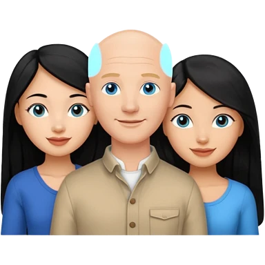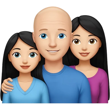Bald white man blue eyes in love with Filipina woman 2 young Filipina girls emoji
