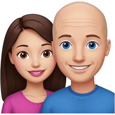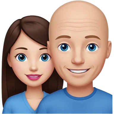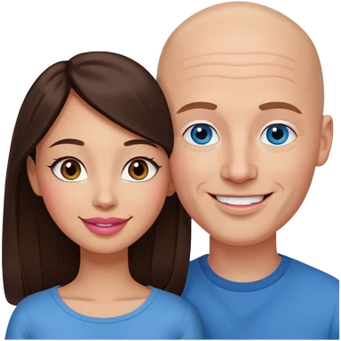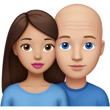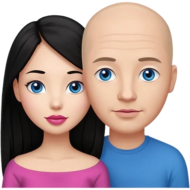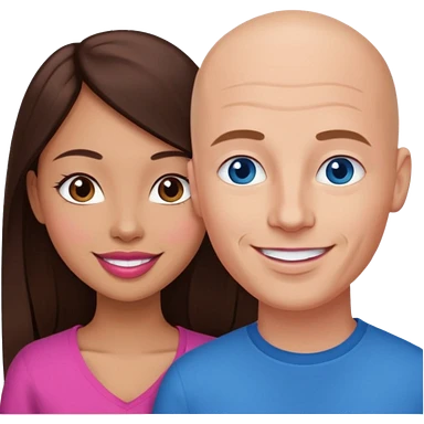 Bald white man blue eyes in love with Filipina woman with long hair and dark brown eyes and pink lips emoji