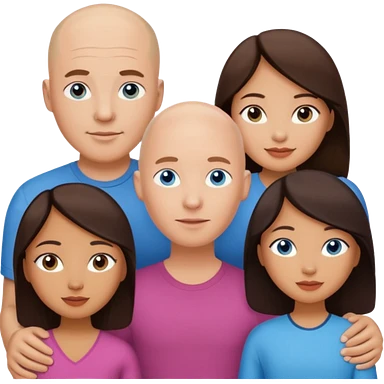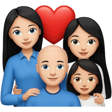 Bald white man blue eyes in love with Filipina woman 2 young Filipina girls long hair emoji