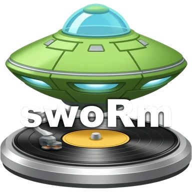 "swoRm" written over Green futuristic SpaceShip turntable (mind the text please) emoji