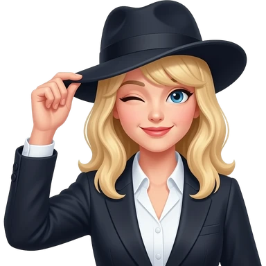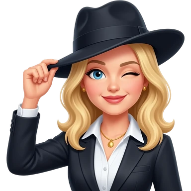 blond woman tipping hat and winking wearing sophisticated woman's clothes emoji