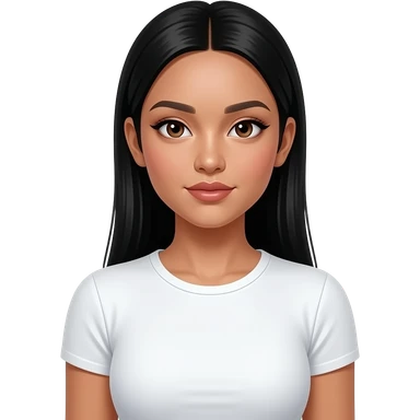 fille cheveux noirs 18 ans, yeux bruns, asiatique, bronzée, cheveux longs lissés, gros maquillage, botox, chemise serrée emoji