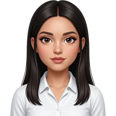 fille cheveux noirs 18 ans, yeux bruns, asiatique, bronzée, cheveux longs lissés, gros maquillage, botox, chemise blanche serrée emoji
