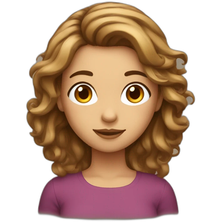 Fille avec des cheveux bouclés marron et avec un gros front et des grosses joues emoji