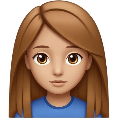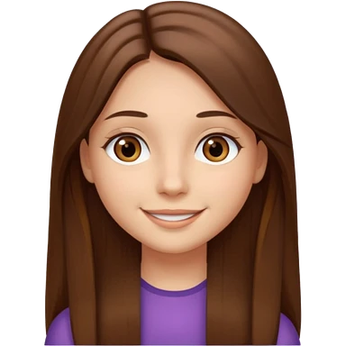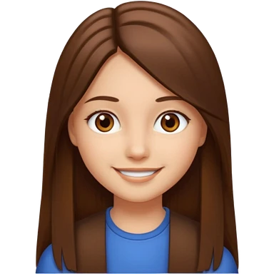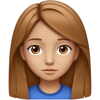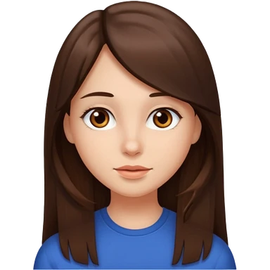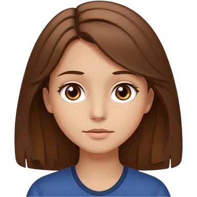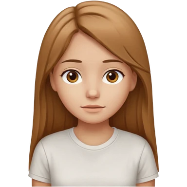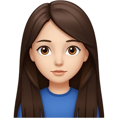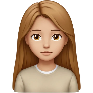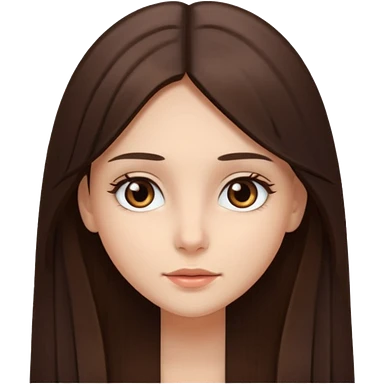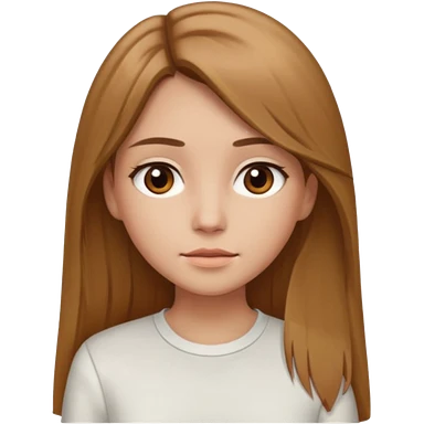 Fille châtain raie au milieu cheveux long et yeux marron et peau beige cheveux lisse pas de4iere les oreilles emoji | AI Emoji Generator