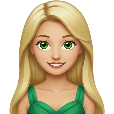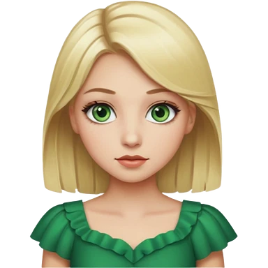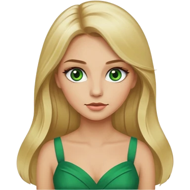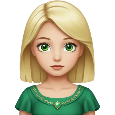 Fille cheuveux blond longt yeux vert maquiller robe Métisse chronique emoji | AI Emoji Generator