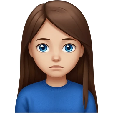 fille cheveux lisse brune yeux bleu pull noir qui regarde mal emoji | AI Emoji Generator