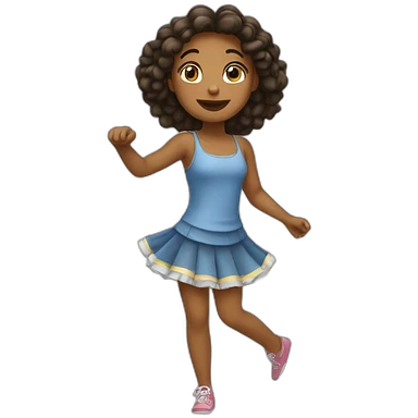 Fille brune avec des taches de rousseur avec un beau tutu bleu rois qui danse emoji
