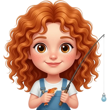 Fille rousse bouclés tâches de rousseur pêcher du poisson emoji