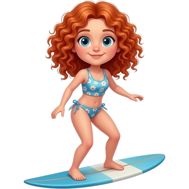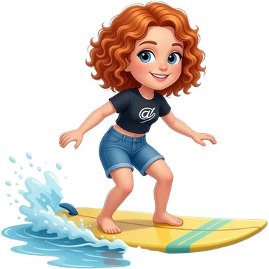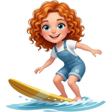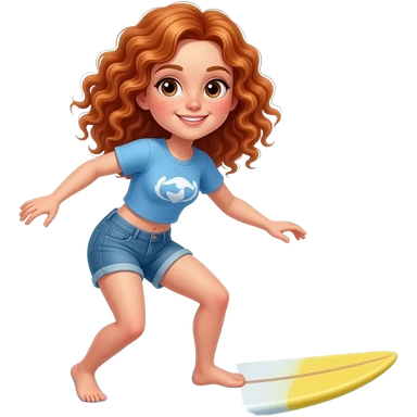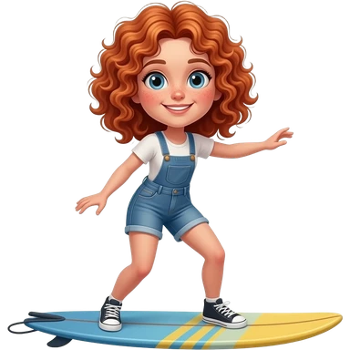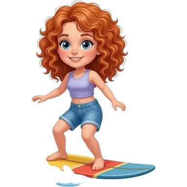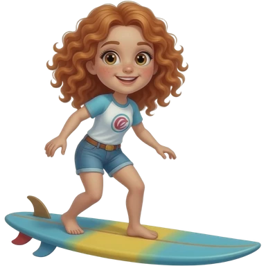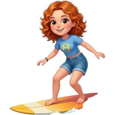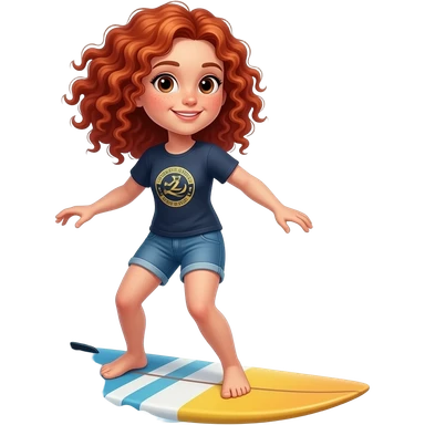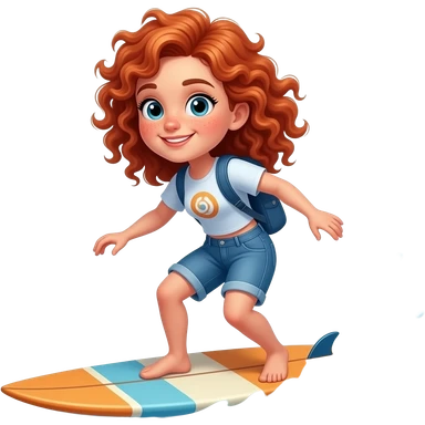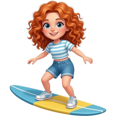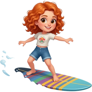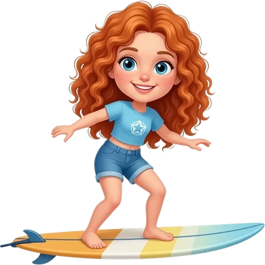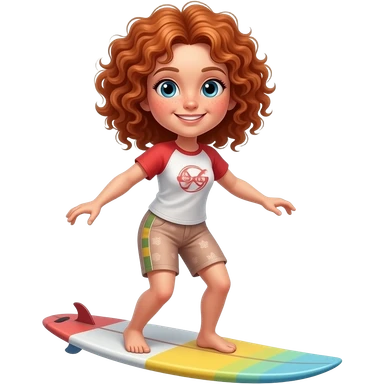Fille rousse bouclés tâches de rousseur surf emoji