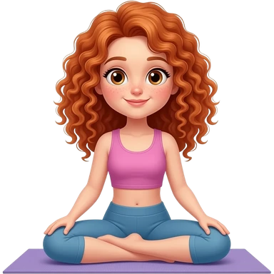Fille rousse bouclés tâches de rousseur yoga emoji