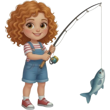 Fille rousse bouclés tâches de rousseur pêcher du poisson emoji